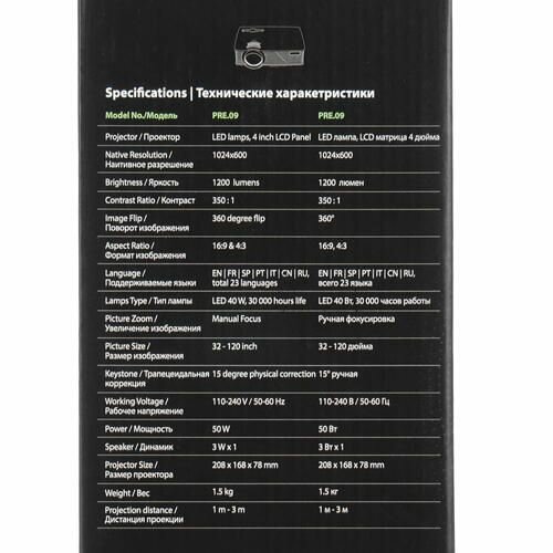 Проектор 1200 LUMENS CS-PRE.09WT.WVGA CACTUS