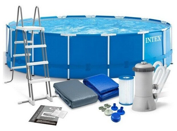28242 Intex Каркасный бассейн Metal Frame 457х122см, 16805л, фильтр-насос 3785л/ч, лестница, тент, подстилка