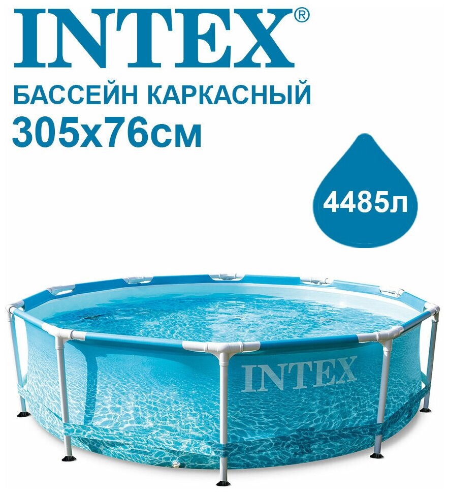 Бассейн каркасный круглый 305х76см, 4485л, серии Metal Frame Pool Set Beachside, большой для всей семьи, Intex 28206