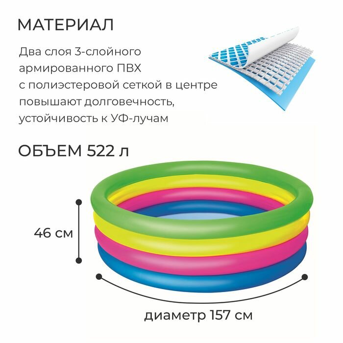 Бассейн надувной Bestway «Радуга», размер 157 х 46 см, от 3 лет, 51117, разноцветный