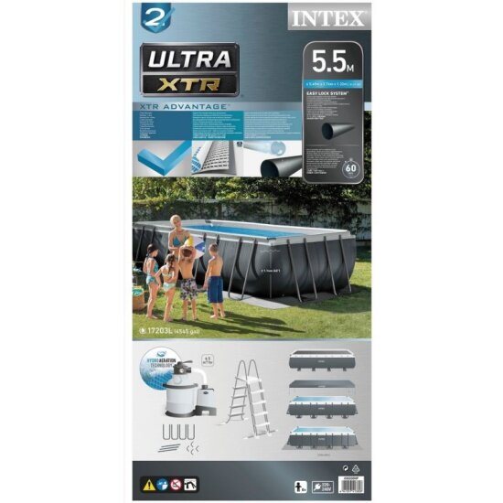 Купить Бассейн INTEX ULTRA XTR RECTANGULAR FRAME, 549x274x132см, фильтр-насос песчаный 4,5м?, лестница, подстилка, тент Объем: 17203л
