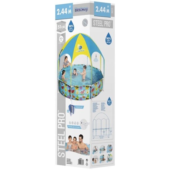 Бассейн каркасный BESTWAY Steel Pro с навесом 244 х 51 см от 2 лет (56432) интересное: