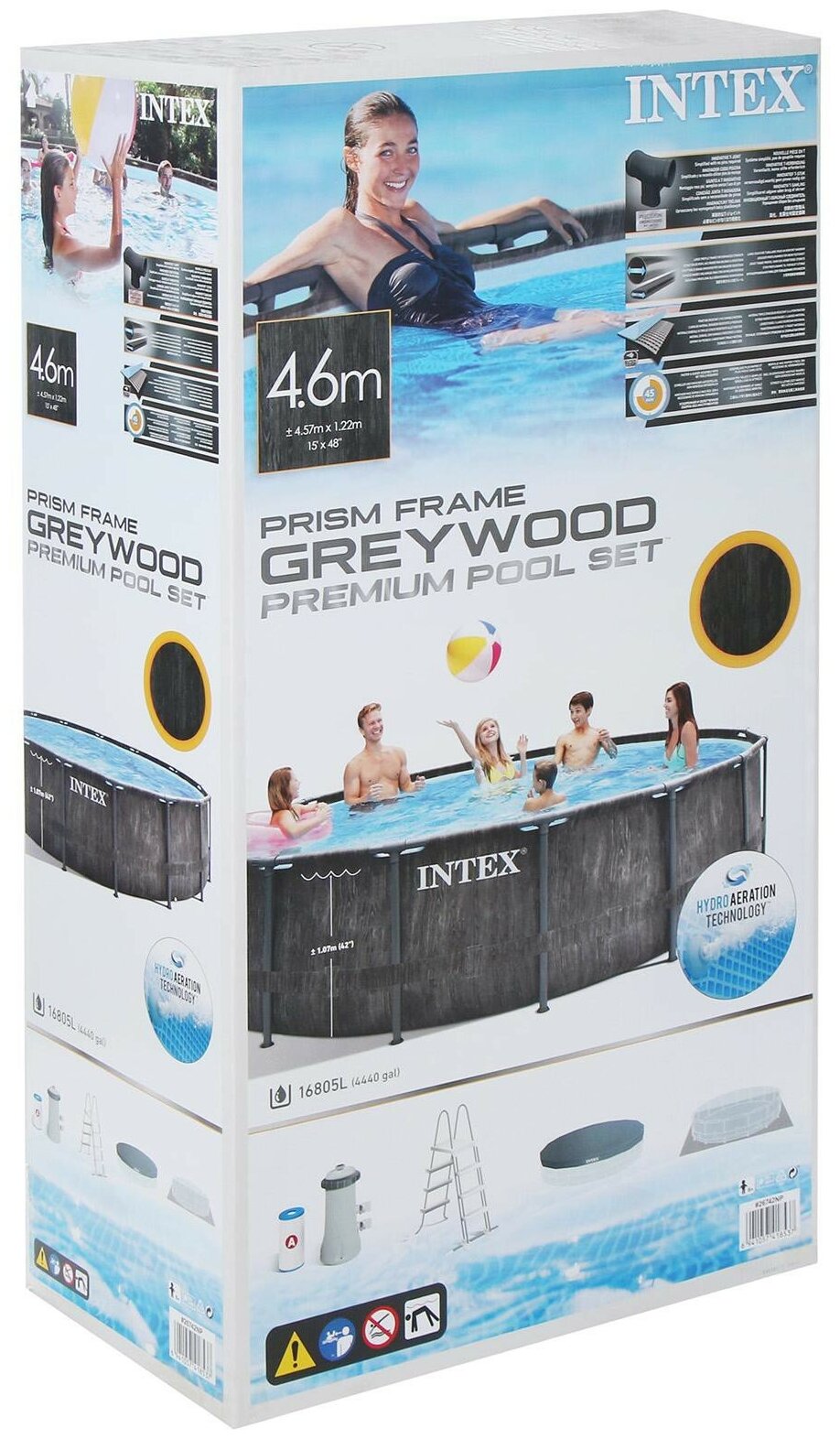 Бассейн каркасный Prism Frame Greywood, 457 х 122 см, фильтр-насос, лестница, тент, подстилка, 26742NP INTEX интересное: