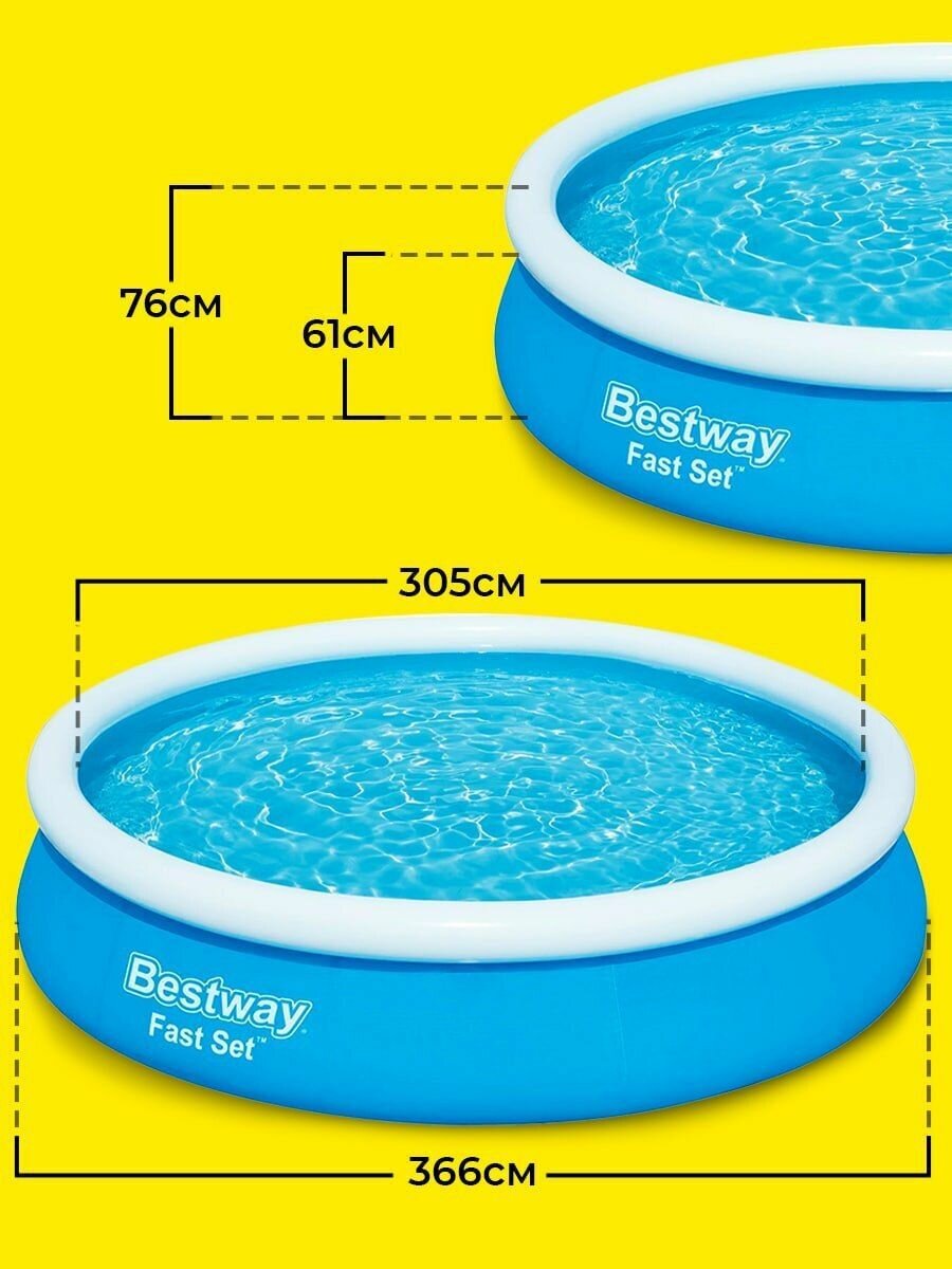 Бассейн надувной Fast Set, 366 х 76 см, от 6 лет, Bestway