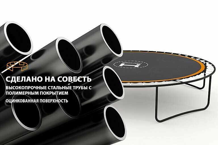 | Состав набора | Каркас батута, комплект пружин, защитный мат, верхняя защитная сетка, нижняя защитная сетка, лестница, теневой тент, ключ для установки пружин, набор инструментов и крепежей |