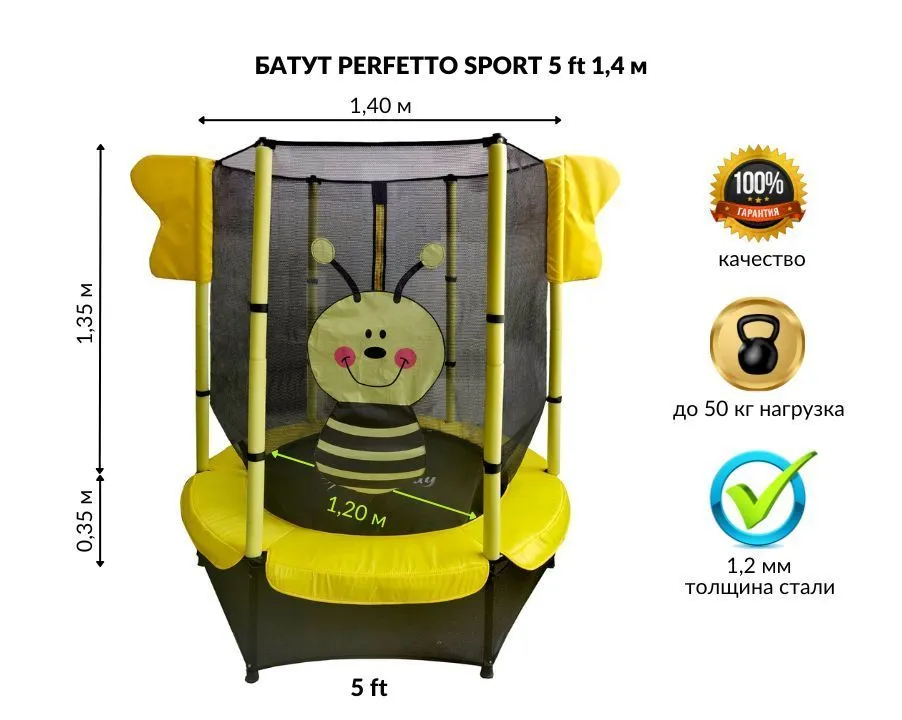 Батут с защитной cеткой "PERFETTO SPORT 5" диаметр 1,4 м интересное: