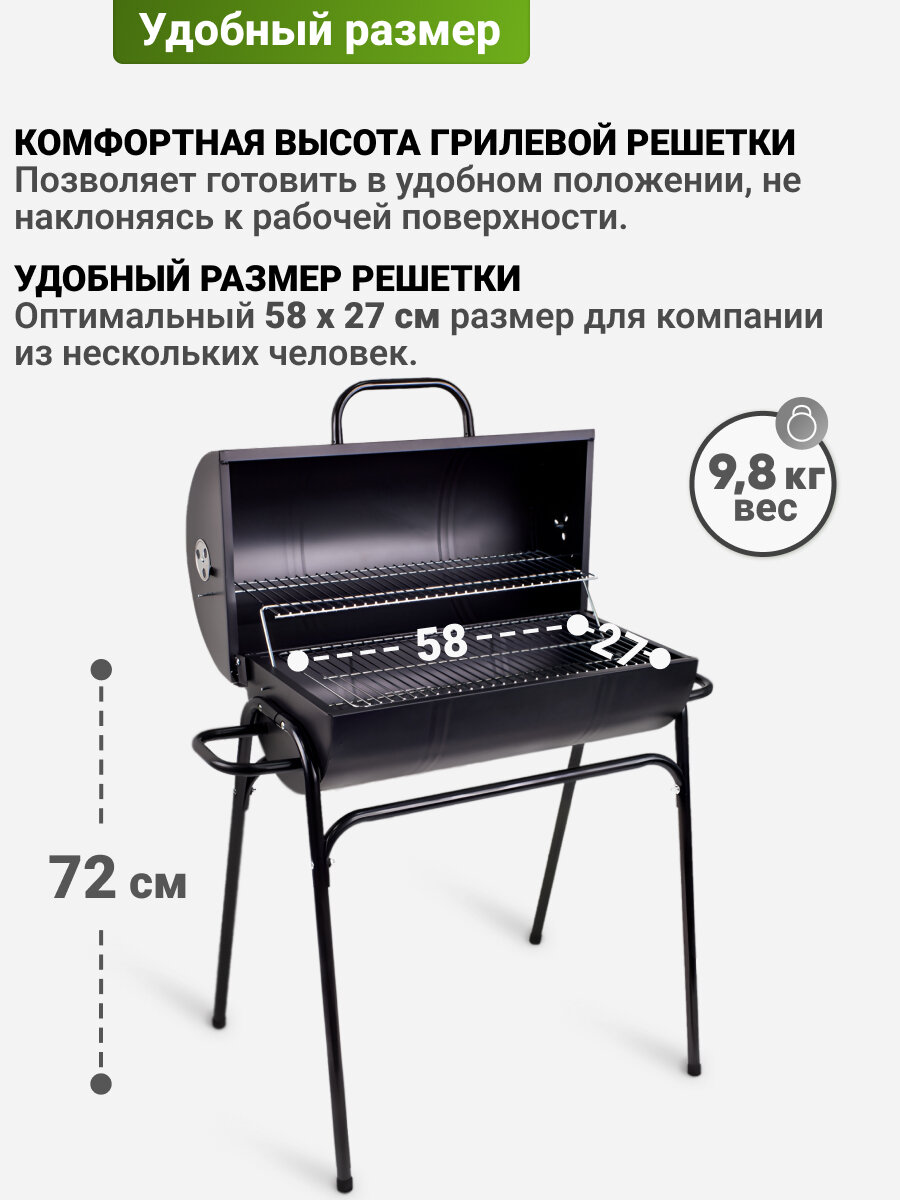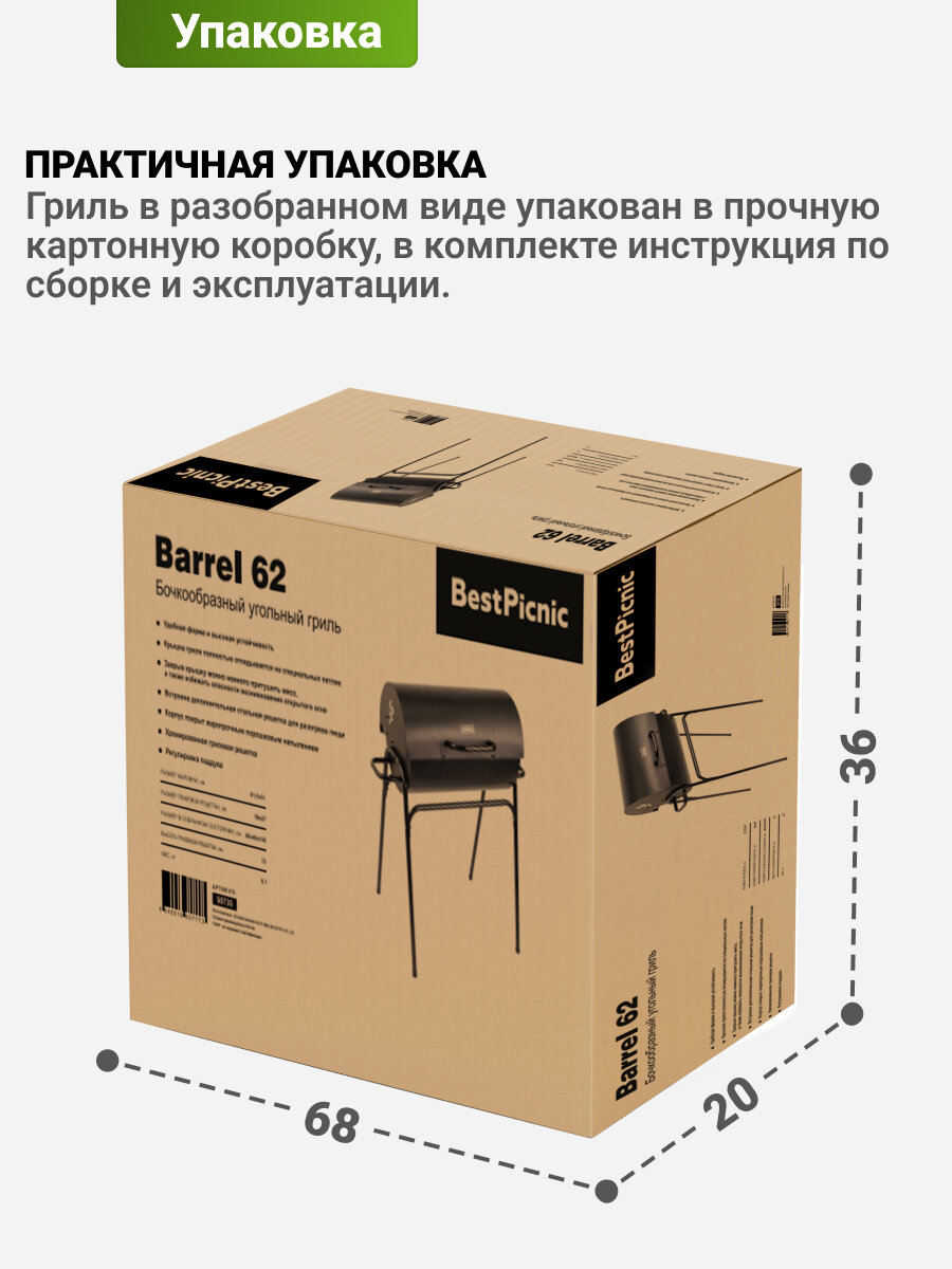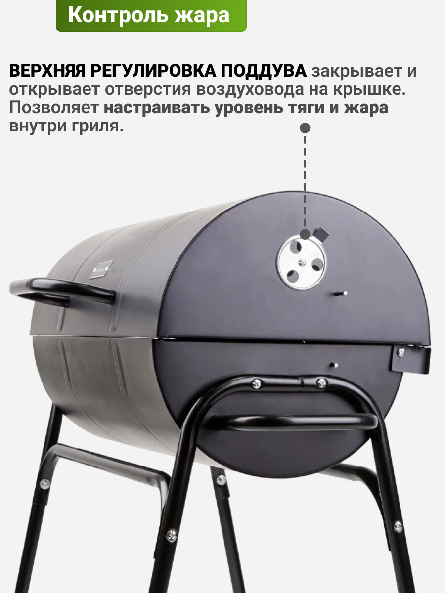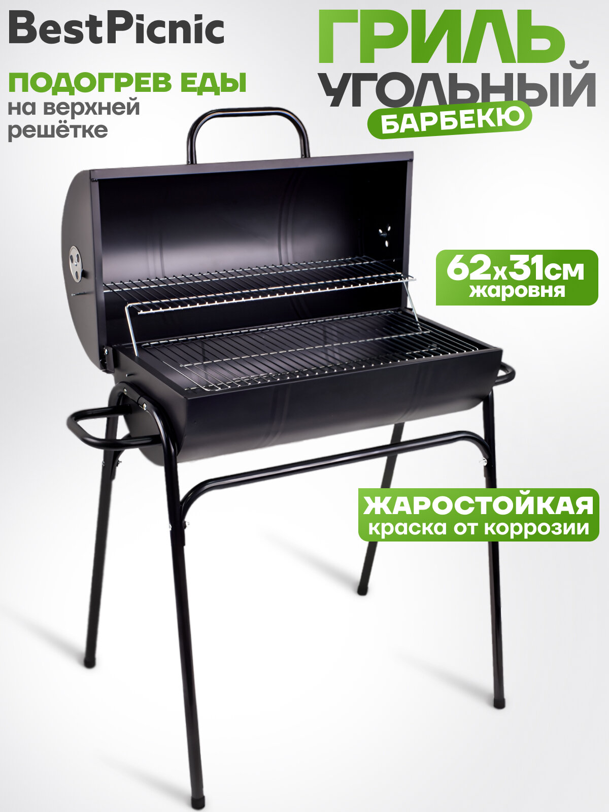 Гриль угольный BEST PICNIC "Barrel 62", классический, 80 х 49 х 105 см интересное: