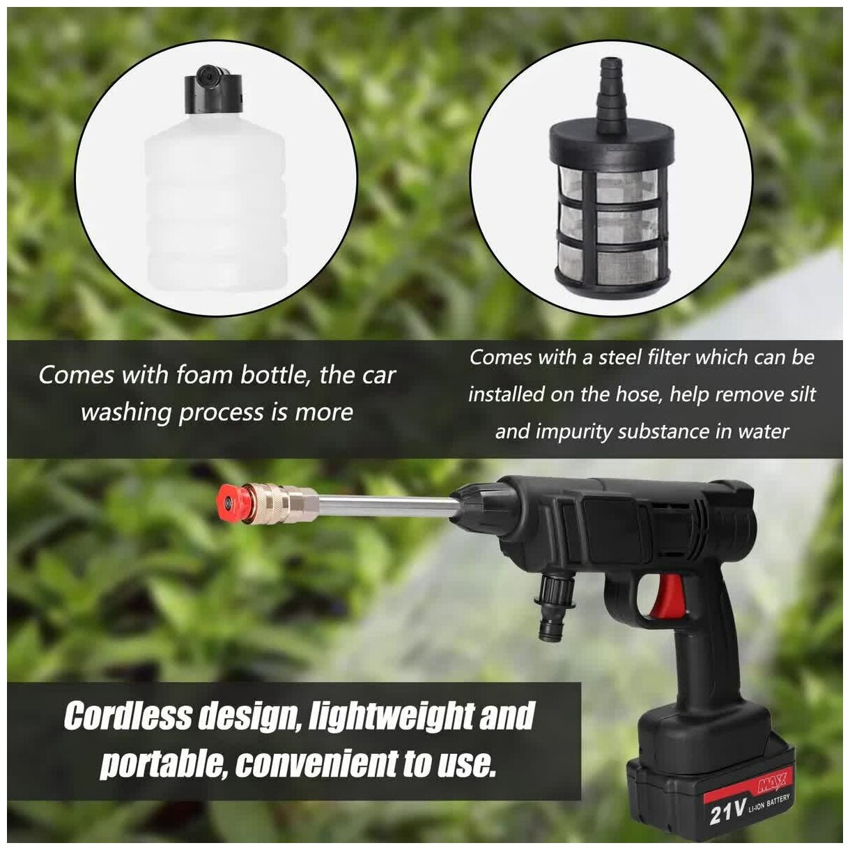 Портативная мойка высокого давления Veker 21V 130W интересное: