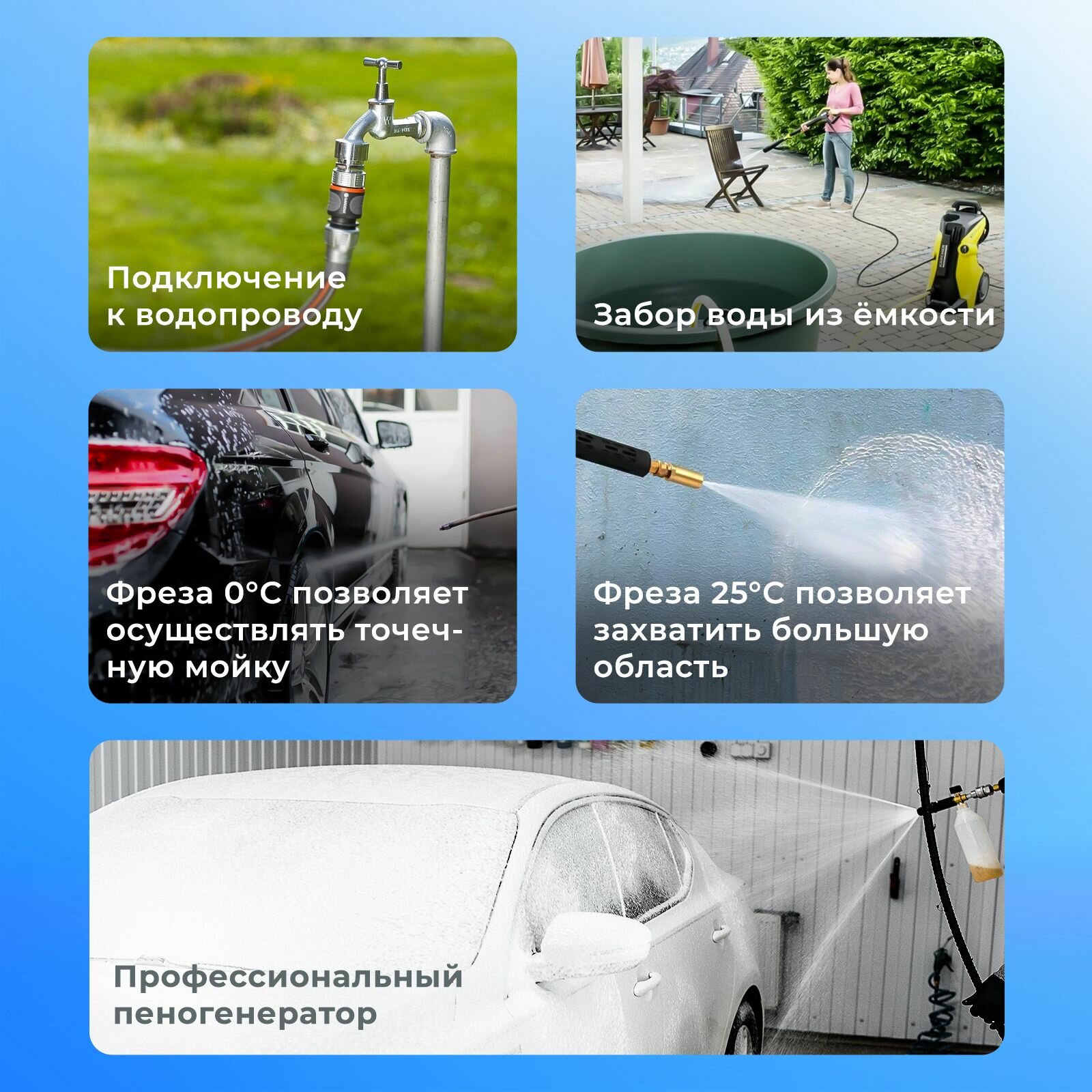 | Насадки | стандартная насадка / пеногенератор / точечная насадка |