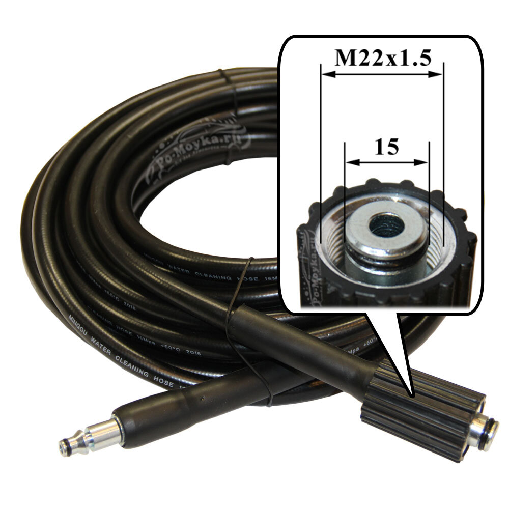 | Дополнительная информация | Шланг бытовой пластиковый с внутренней оплеткой из нитки. Вход на минимойку гайка, выход штуцер быстросъемный (см. фото) |