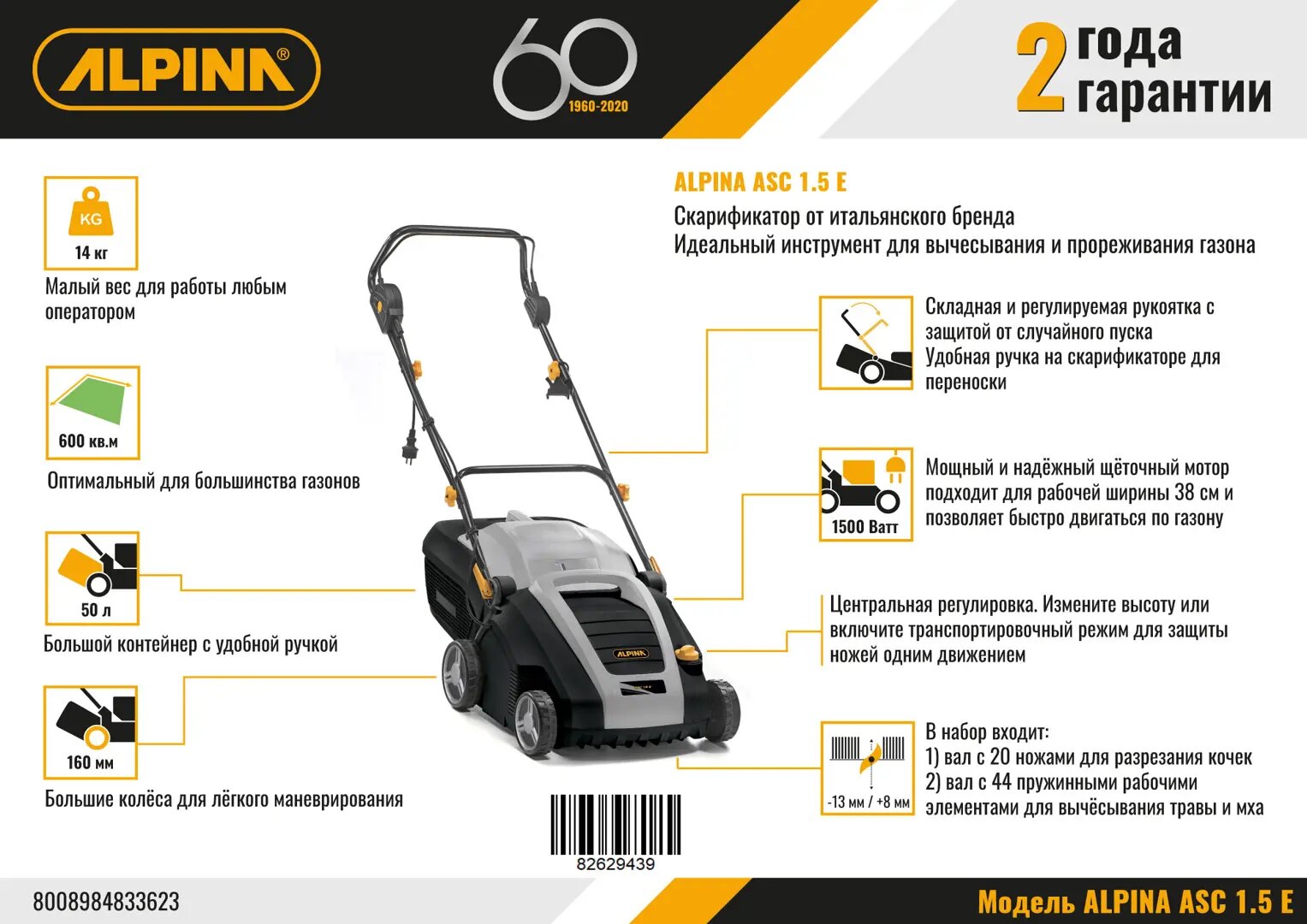 Аэратор для газона электрический Alpina ASC 1.5 E 1300 Вт 42 см интересное: