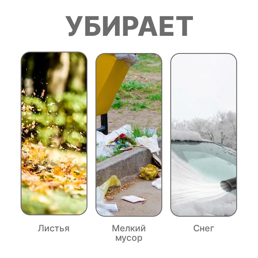 Воздуходувка имеет мощный двигатель, который работает на высоких оборотах. Это позволяет быстро и эффективно очищать мой участок от мусора. |