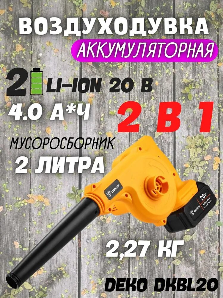 Купить Воздуходувка садовая аккумуляторная DEKO DKBL20, 20В, 2x4.0Ач