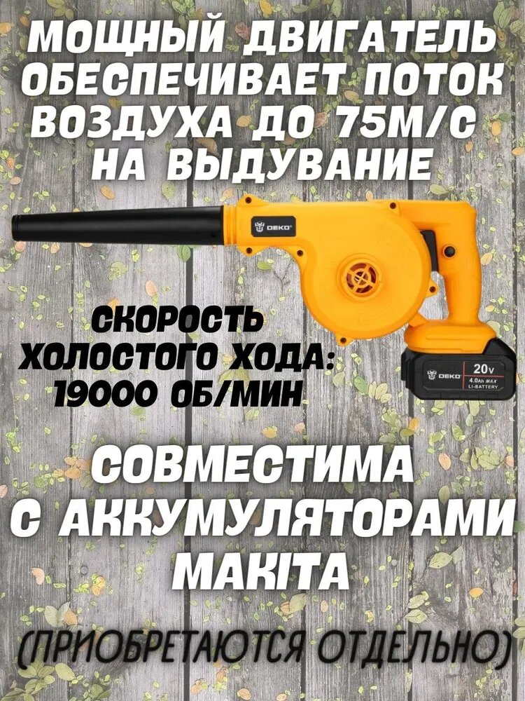 СохранитьВоздуходувка садовая аккумуляторная DEKO DKBL20, 20В, 2x4.0Ач интересное: