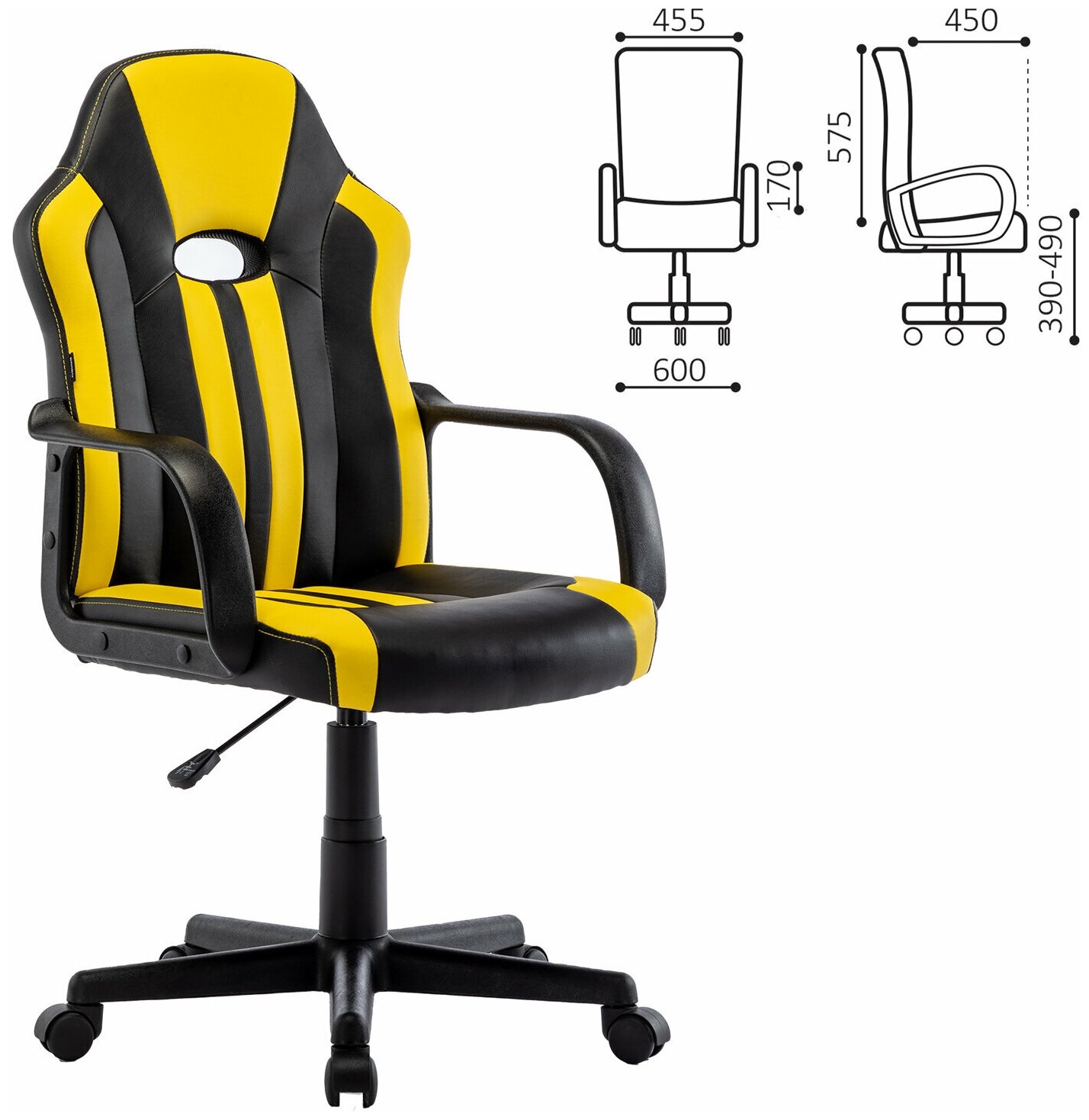 Кресло компьютерное BRABIX "Stripe GM-202", экокожа, черное/желтое, 532510 В комплекте: 1шт.