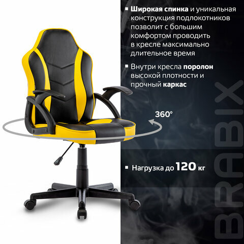 Кресло компьютерное BRABIX "Shark GM-203", экокожа, черное/желтое, 532514