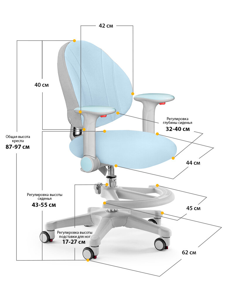 Растущее детское кресло для дома Mio (Y-407) KBL + подлокотники в комплекте + подставка для ног