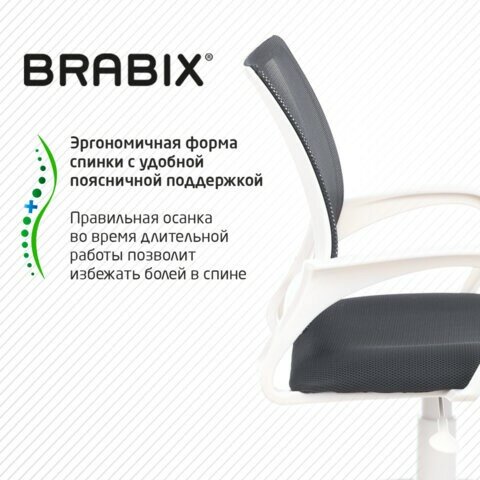Кресло Brabix fly, mg-396w, с подлокотниками, пластик белый, сетка, темно-серое (MG-396W_532400)