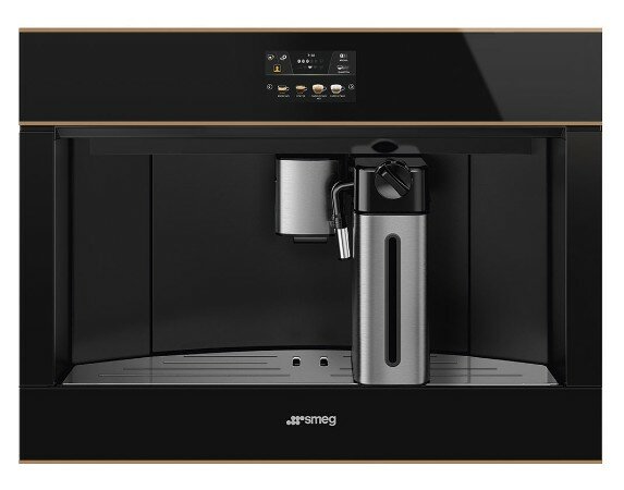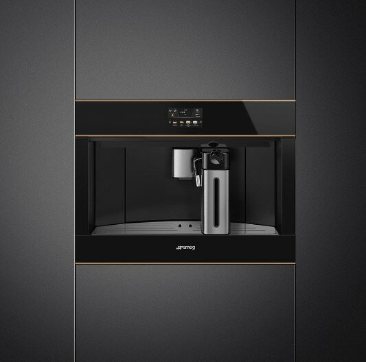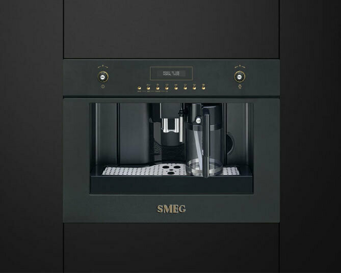Встраиваемая кофемашина SMEG/ Coloniale, встраиваемая автоматическая кофемашина, цвет: антрацит, фурнитура позолоченная и латунная в комплекте
