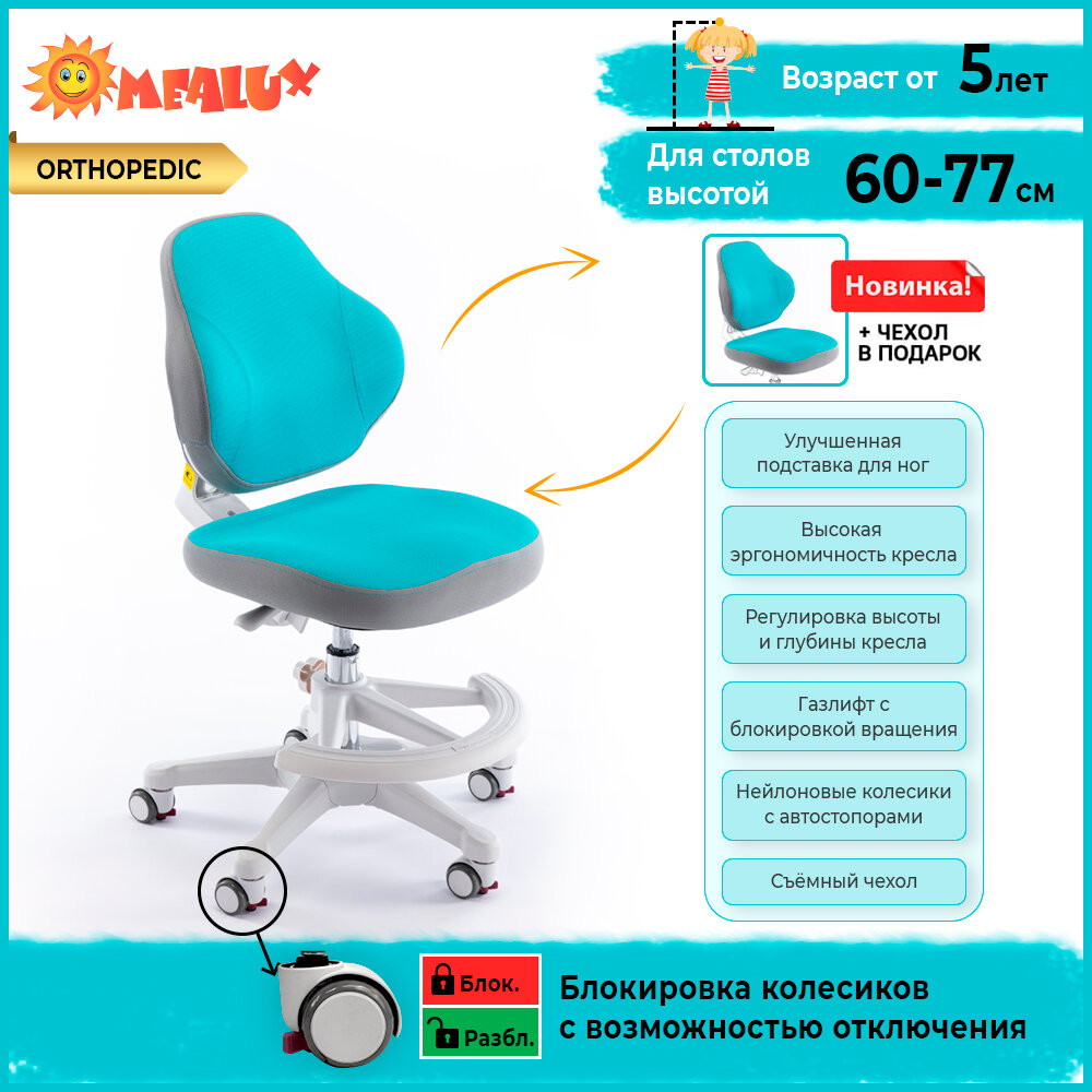 Растущее детское кресло для дома ErgoKids (Y-405) OR для обычных и растущих парт с подставкой для ног и чехлом
