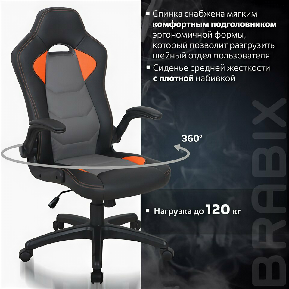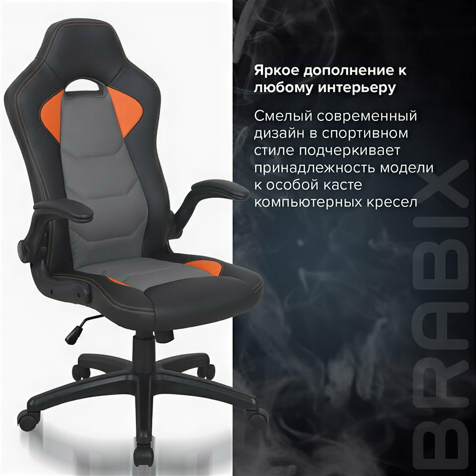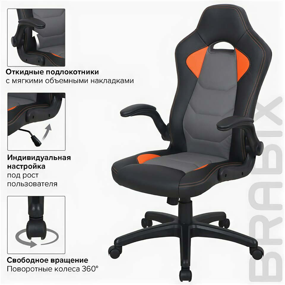 Кресло компьютерное "BRABIX Skill GM-005", откидные подлокотники, экокожа, черное/оранж