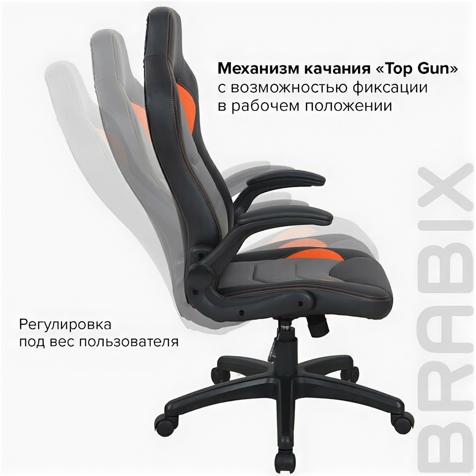 Кресло игровое BRABIX Skill GM-005, откидные подлокотники, экокожа, черное/оранжевое