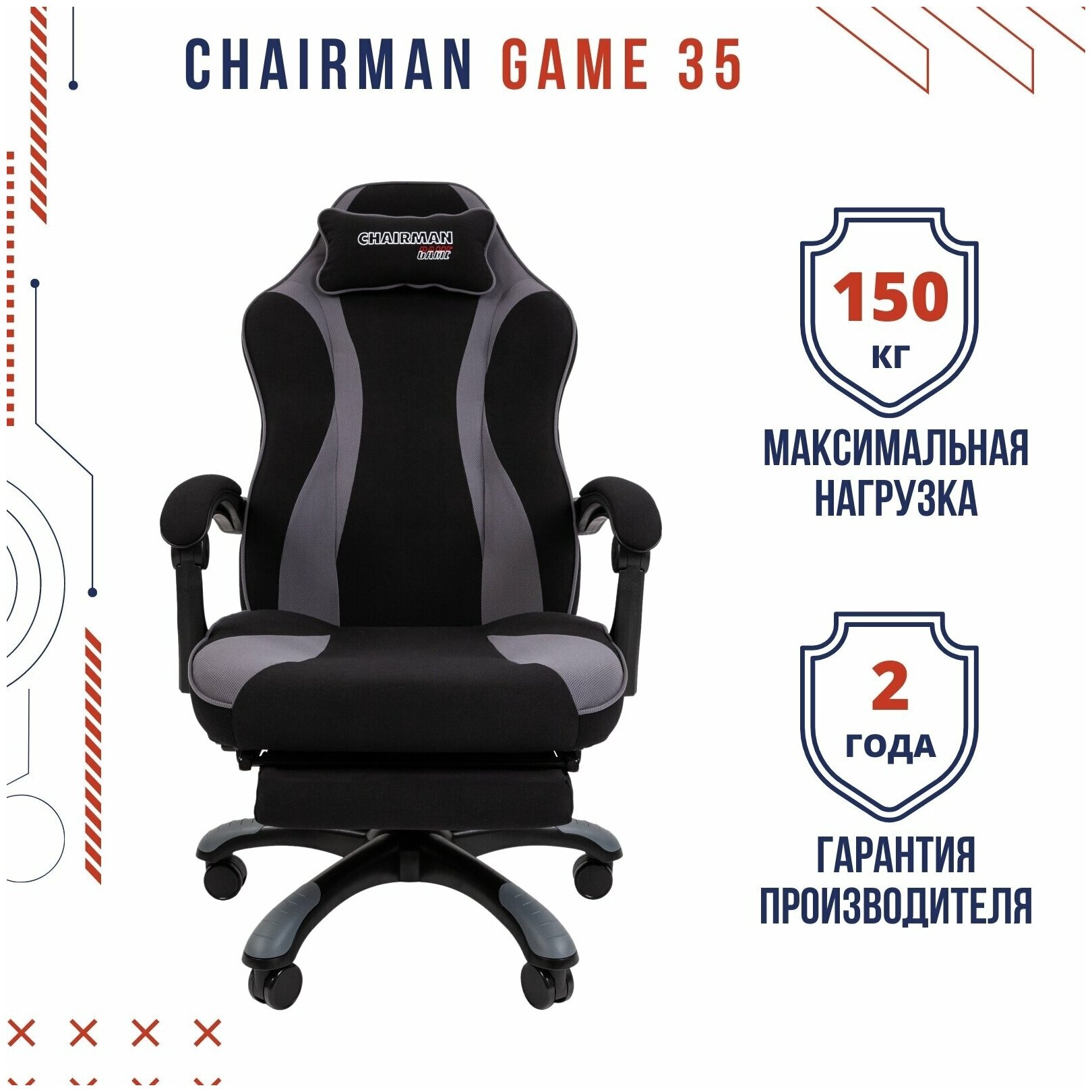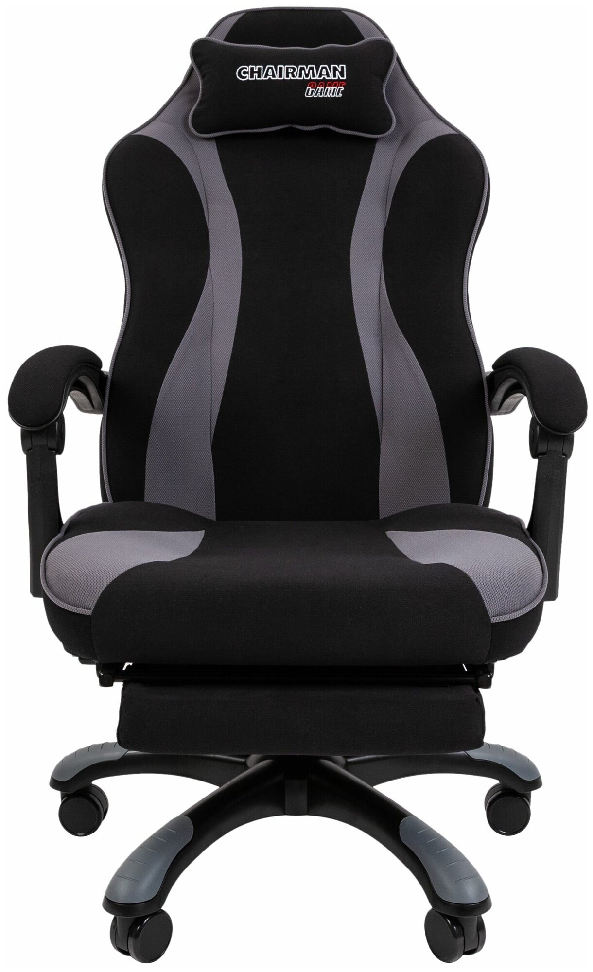 Игровое компьютерное кресло с выдвижной подставкой для ног CHAIRMAN GAME 35, ткань, черный/серый