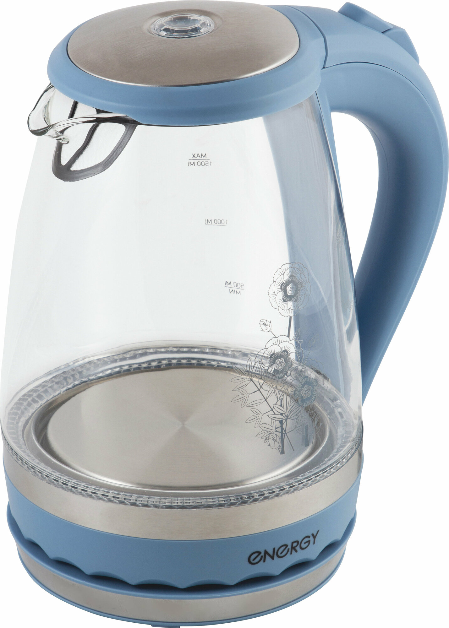 Energy Чайник электрический ENERGY E-279, стекло, 1.5 л, 2200 Вт, голубой