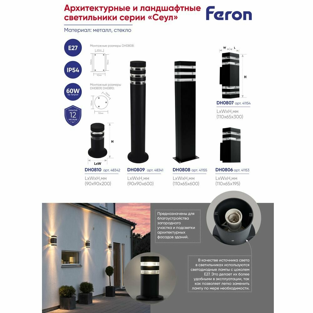 Feron DH0808 Светильник садово-парковый, серии «Сеул», (НТУ) 60W, E27, 230V, IP54, прямоугольник 41155