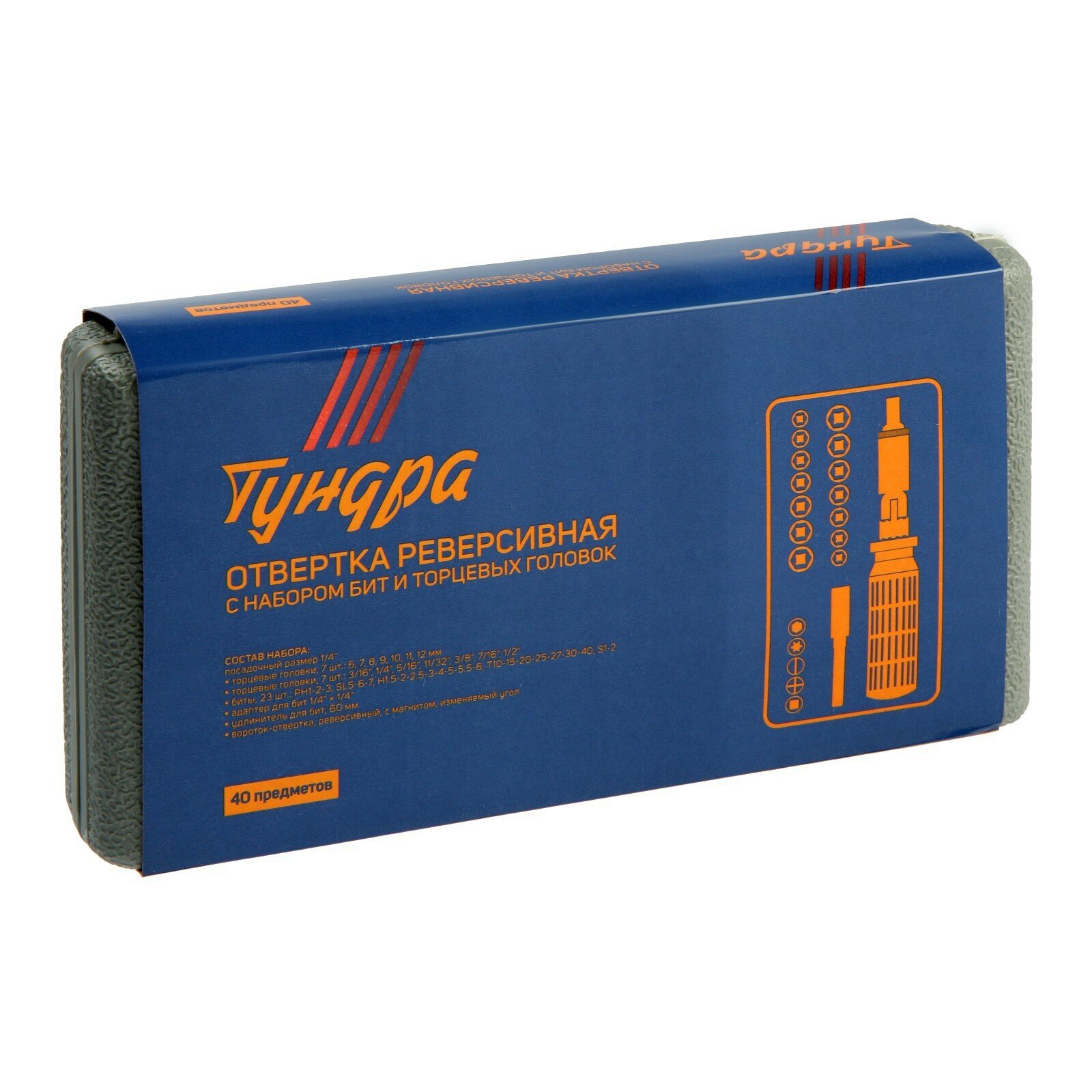 Отвертка реверсивная TUNDRA, с набором бит и головок в кейсе, 40 предметов