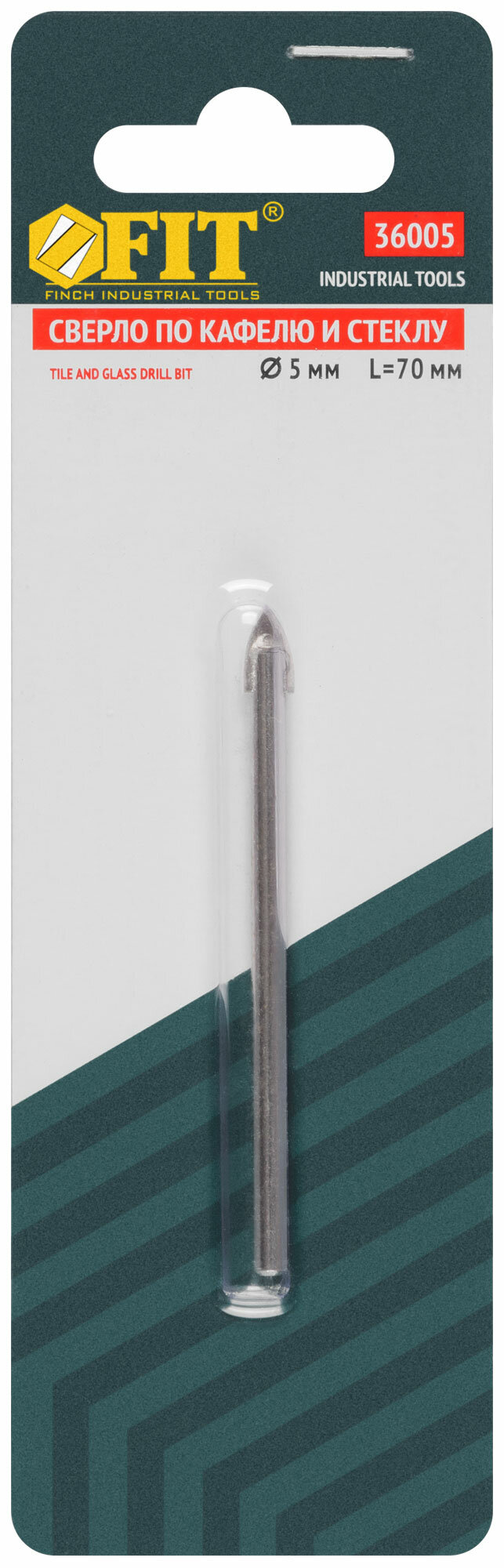 Сверло FIT 36005, для керамики и стекла, 5мм x 70мм, инструментальная сталь