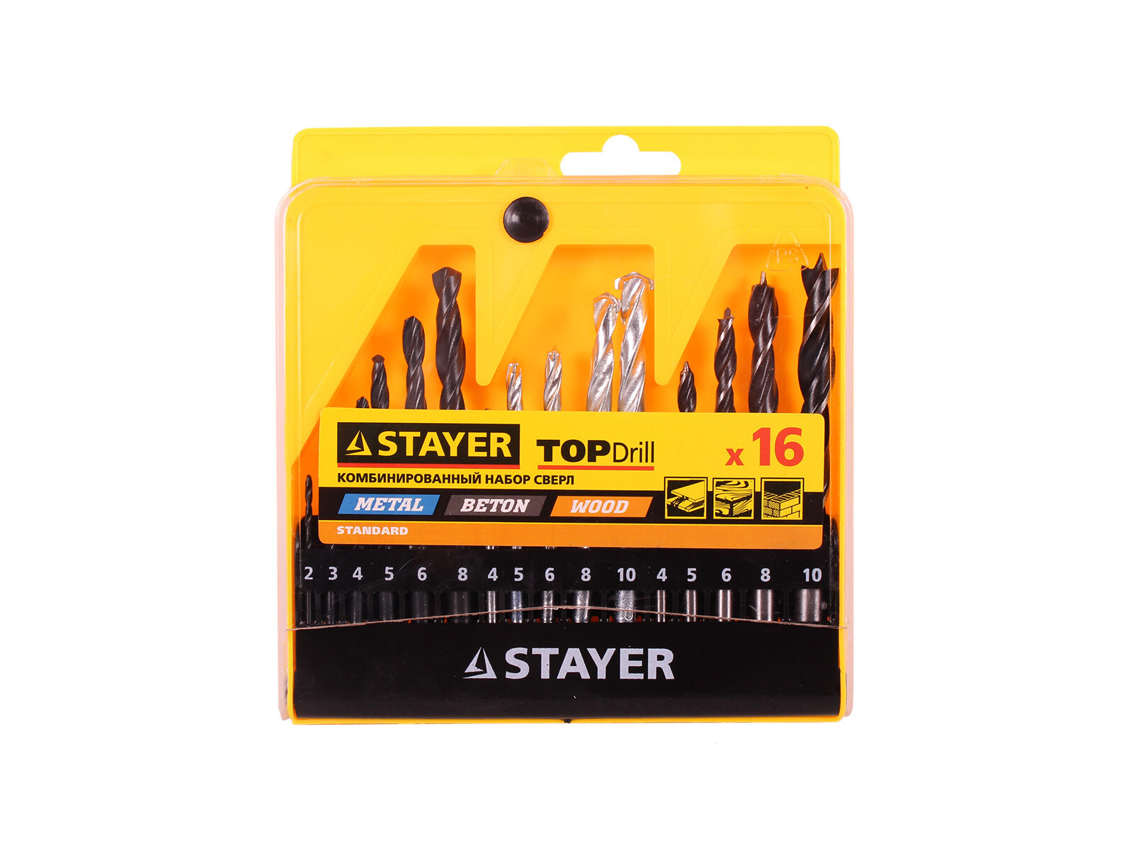 Набор STAYER "STANDARD": Сверла комбинированные, дерево (4-5-6-8-10мм), металл (2-3-4-6-8мм), бетон (4-5-6-8-10мм), 16 предметов