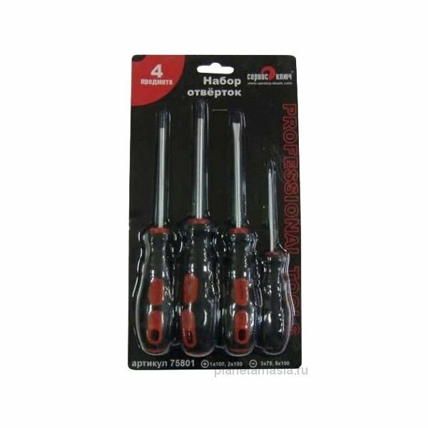 Набор отверток (4 предмета) (PH1x100, PH2x100, plain - 5x100, -3x75) Сервис ключ сервис ключ 75801