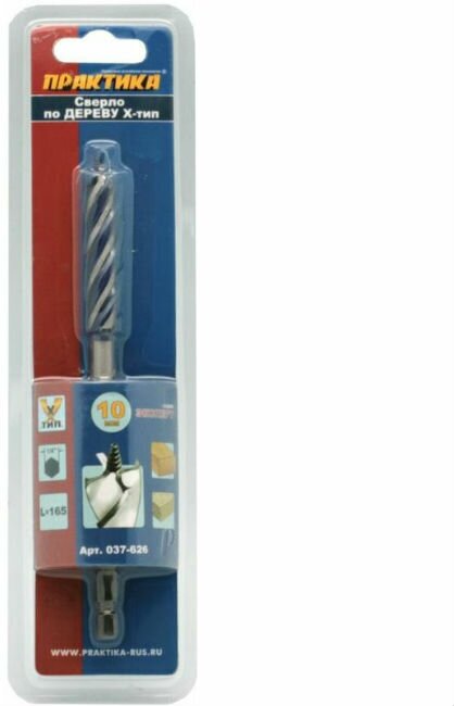 Сверло по дереву Х-тип ПРАКТИКА 10 х 165 мм (1шт.) блистер(1шт.) блистер