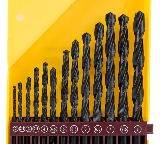| Описание | Предназначен для создания отверстий в металле, пластмассе, дереве. Набор сверл различного диаметра в комплекте (2, 2.5, 3, 3.5, 4, 4.5, 5, 5.5, 6, 6.5, 7, 7.5, 8 мм). Черные. Винтовой прокат. Угол при вершине 118 градусов. Цилиндрический хвостовик. Быстрорежущая сталь HSS. Используются в качестве насадки для электрической дрели с цилиндрическим патроном. |