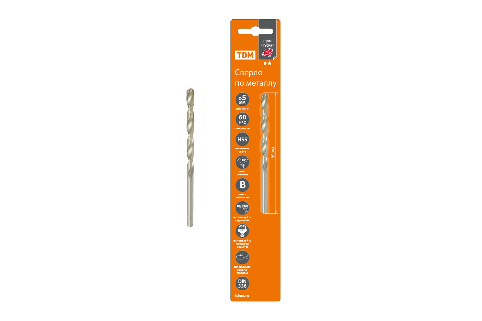 Купить Сверло по металлу, 5 мм, полир., HSS, класс точн. В, 118⁰, цилиндр. хв., блистер 1 шт, "Рубин" TDM