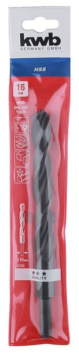 Сверло по металлу KWB 159-160 hss 16.0мм с умен. хвост.