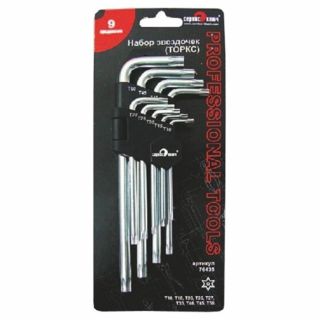Сервис ключ 76435 Набор ключей Г-образных торкс (9 шт.) Сервис ключ 76435