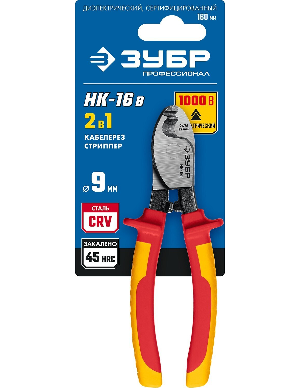 ЗУБР НК-16В d 9мм 165мм 1000В, Диэлектрический кабелерез, Профессионал (23344-16V)