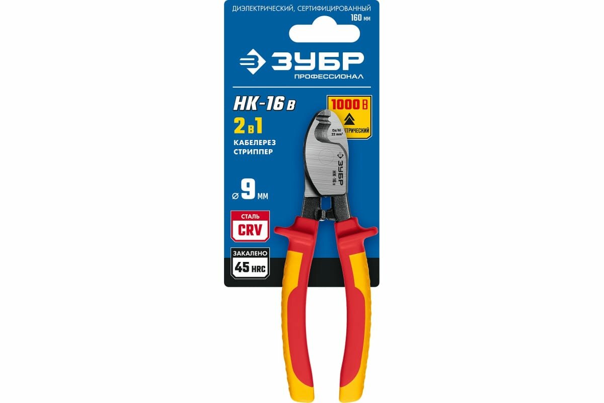 ЗУБР НК-16В d 9мм 165мм 1000В, Диэлектрический кабелерез, Профессионал (23344-16V)