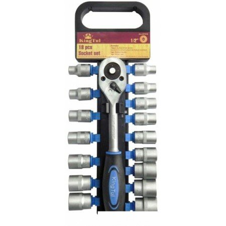 Набор головок с трещоткой в пласт. держателе, 18 пр: 1/2 inch, 6 гр, 8-24 мм KINGTUL KT418 | цена за 1 шт | минимальный заказ 1