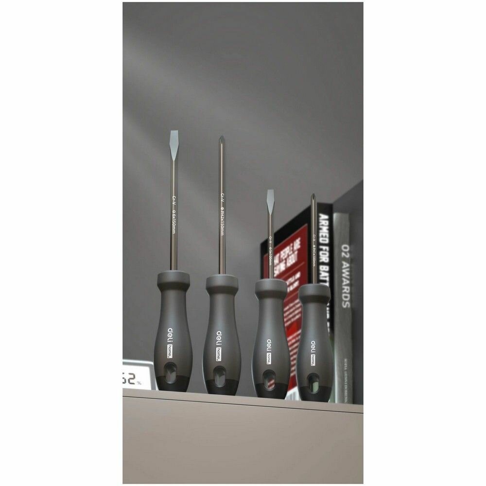 Набор отверток Deli Home Series Gray HT1004C 4шт (PH1x100, PH2x150, SL5x100, SL6x150, Cr-V, Soft Touch рукоятка, эксклюзивный дизайн) 130282