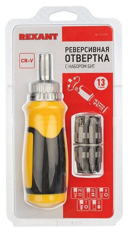 Rexant Реверсивная отвертка с набором бит 13 предметов 12-4778 .
