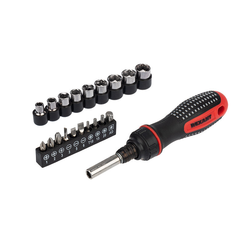 Rexant Набор головок и бит с реверсивной отверткой, 21 предмет REXANT