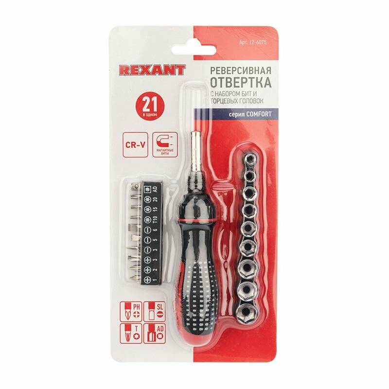 Купить Набор головок и бит с реверсивной отверткой, 21 предмет Rexant 12-6075 .