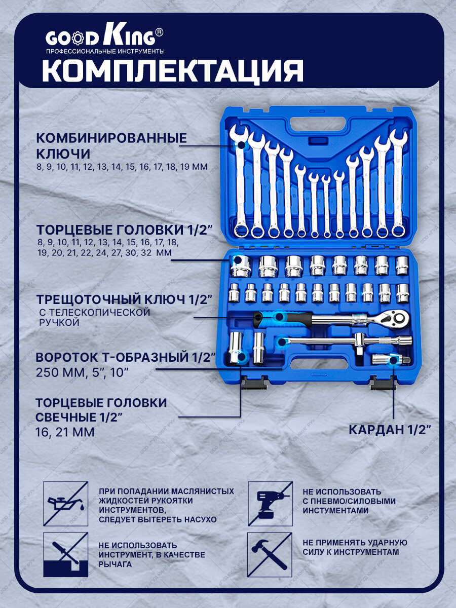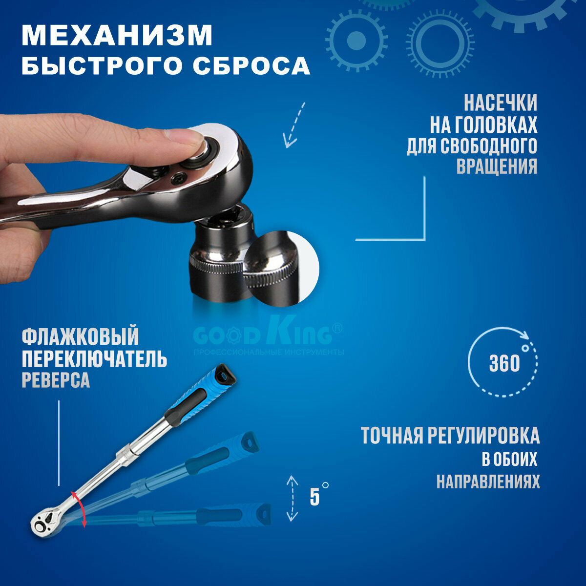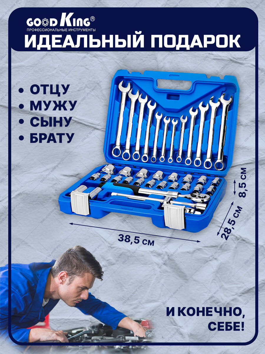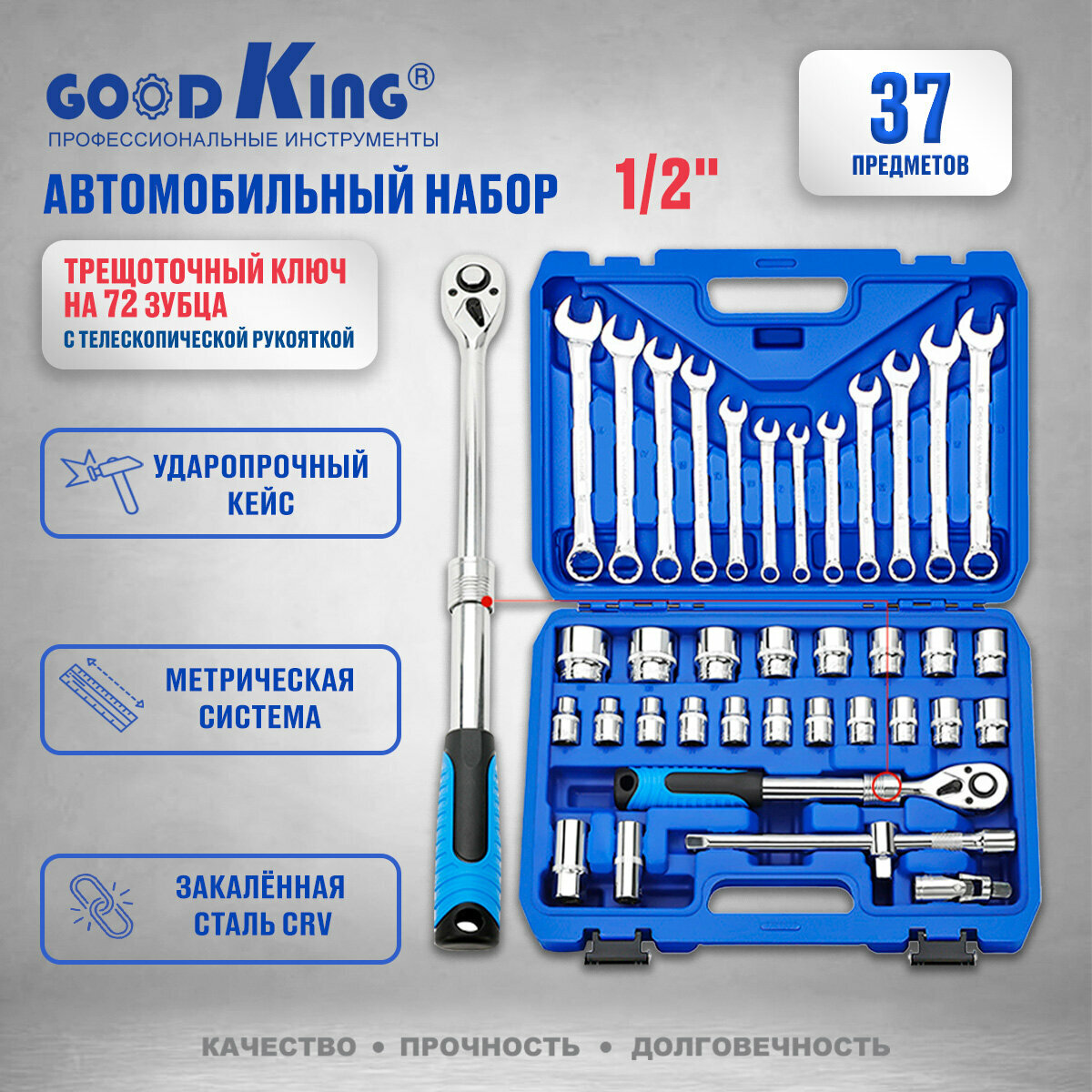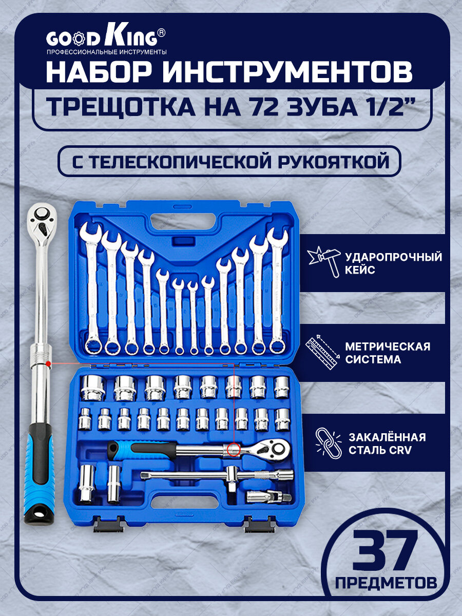 Купить Набор инструментов 37 предметов с трещоткой 1/2" 72 зуба GOODKING B-10372, набор торцевых головок, комбинированные гаечные ключи, для авто, для дома
