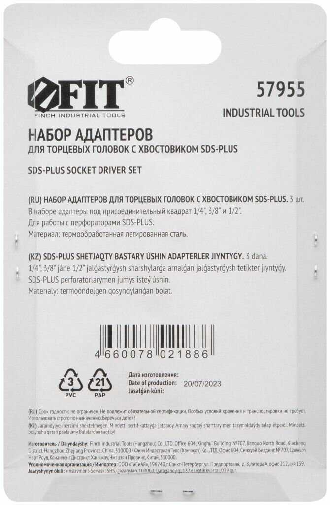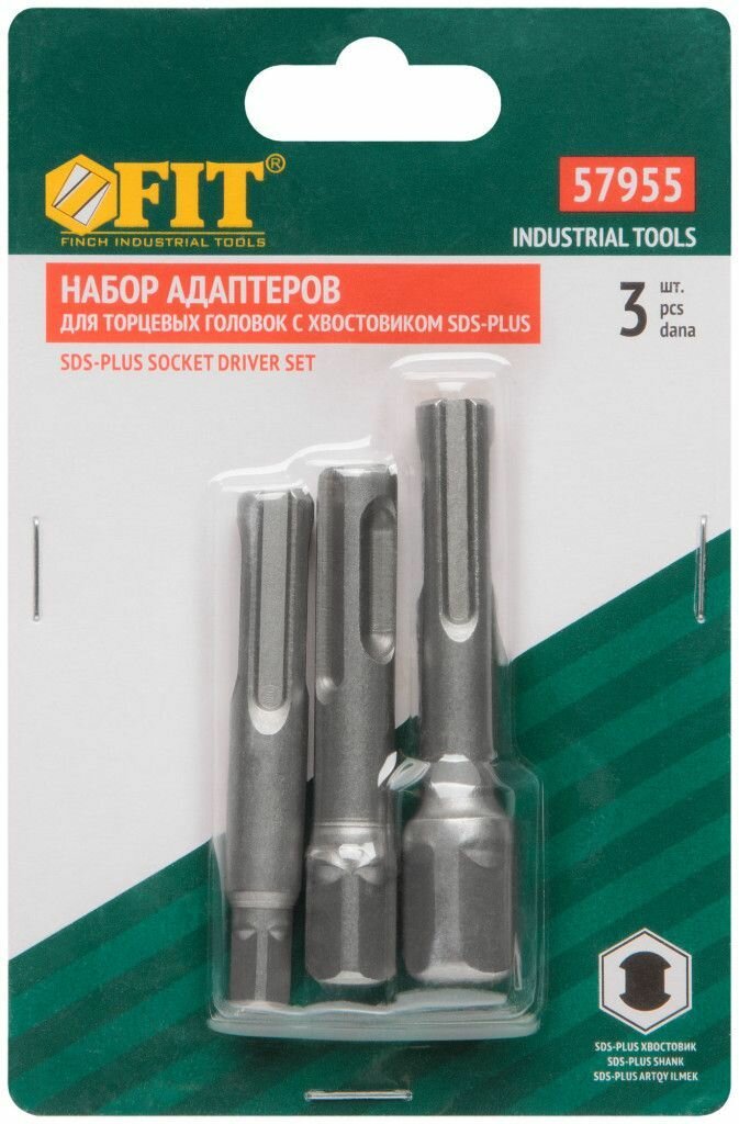 Адаптеры под головки с хвостовика SDS-PLUS, FIT 57955 набор 3 шт. , легированная сталь