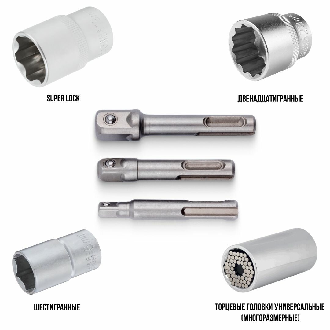 СохранитьАдаптеры под головки с хвостовика SDS-PLUS, набор 3 шт. , легированная сталь интересное: