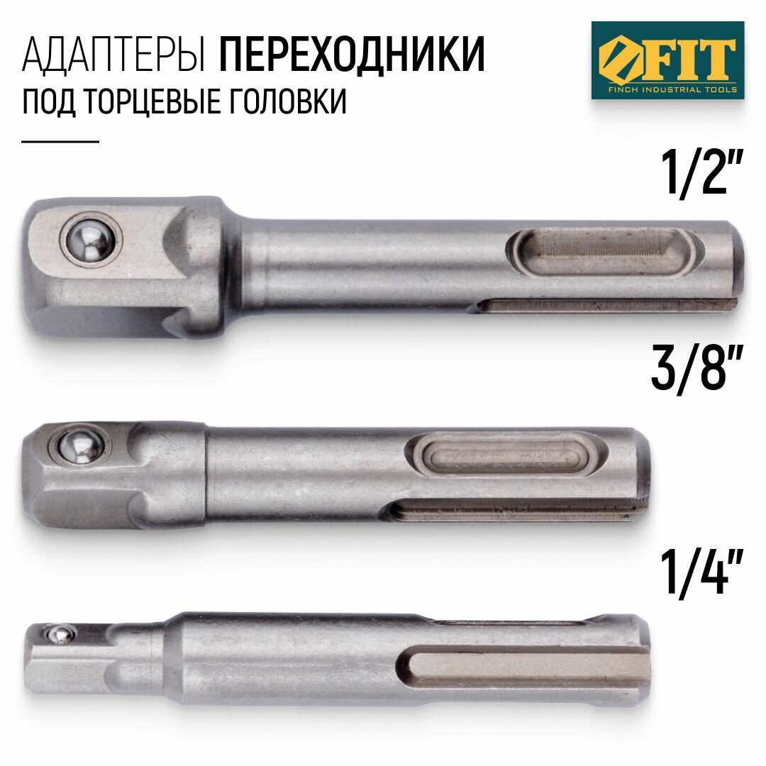 Адаптеры под головки с хвостовика SDS-PLUS, набор 3 шт. , легированная сталь Fit