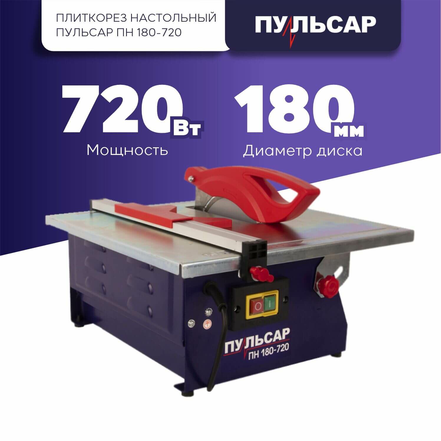 Плиткорез настольный пульсар ПН 180-720 (720Вт, диск 180x22.23мм, стол 385x395мм, пропил 34 мм, 10кг)